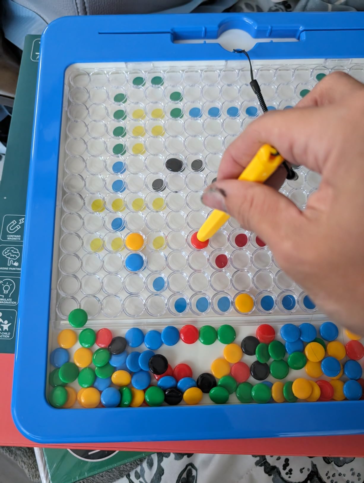 ✔️ Función: Tablero para dibujar y formar figuras con bolitas magnéticas